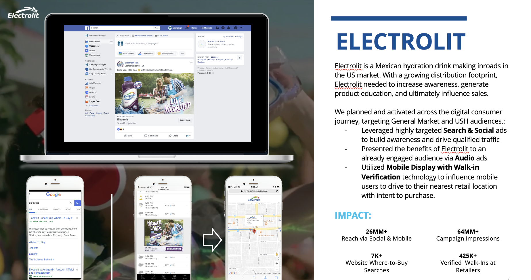 Electrolit, a well-known hydration brand in Mexico, was launching in the U.S. and needed to break through with American consumers by clearly communicating when and why to choose it over traditional sports drinks.